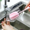 Deep 360° Cleaning-Extended plastic handle + flexible sponge head reaches deep into cups/bottles, removing stubborn stains in corners.
