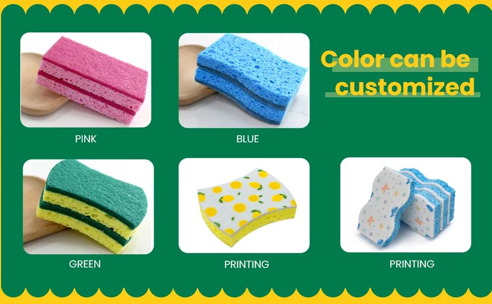 double sided:High-density sponge:Strong absorbent foaming rich, Flexible scouring pad:Effectively removes stubborn stains