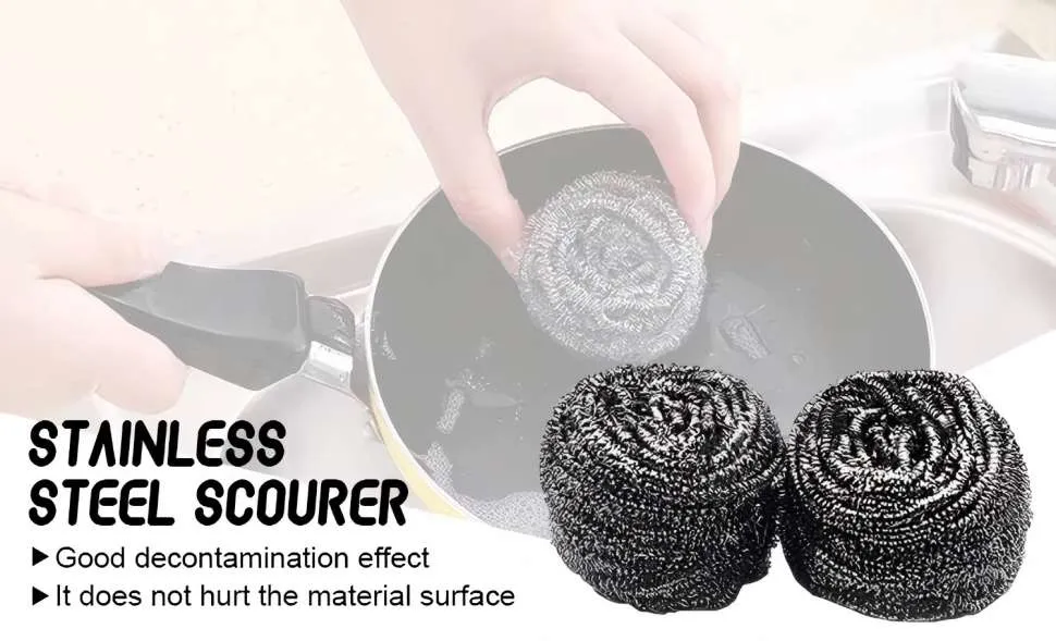 Feature: stainless steel sponge spiral scourer, kitchen cleaning product, cleaning scourer